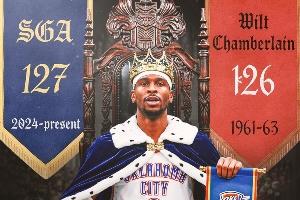 这样,亚历山大连续127场至少20分,正式超越1961-63赛季的张伯伦(126场),登顶NBA历史第一。