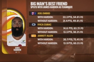 我就是体系!恩比德&祖巴茨&阿伦搭档哈登 得分命中率均显著提升