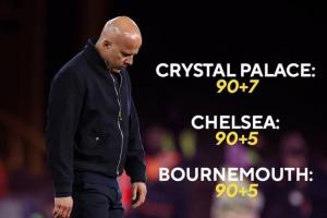 【被绝杀最多纪录】Opta:利物浦本赛季在英超已有5场比赛因第90分钟后丢球而失利,是英超历史上单赛季被绝杀次数最多的球队。